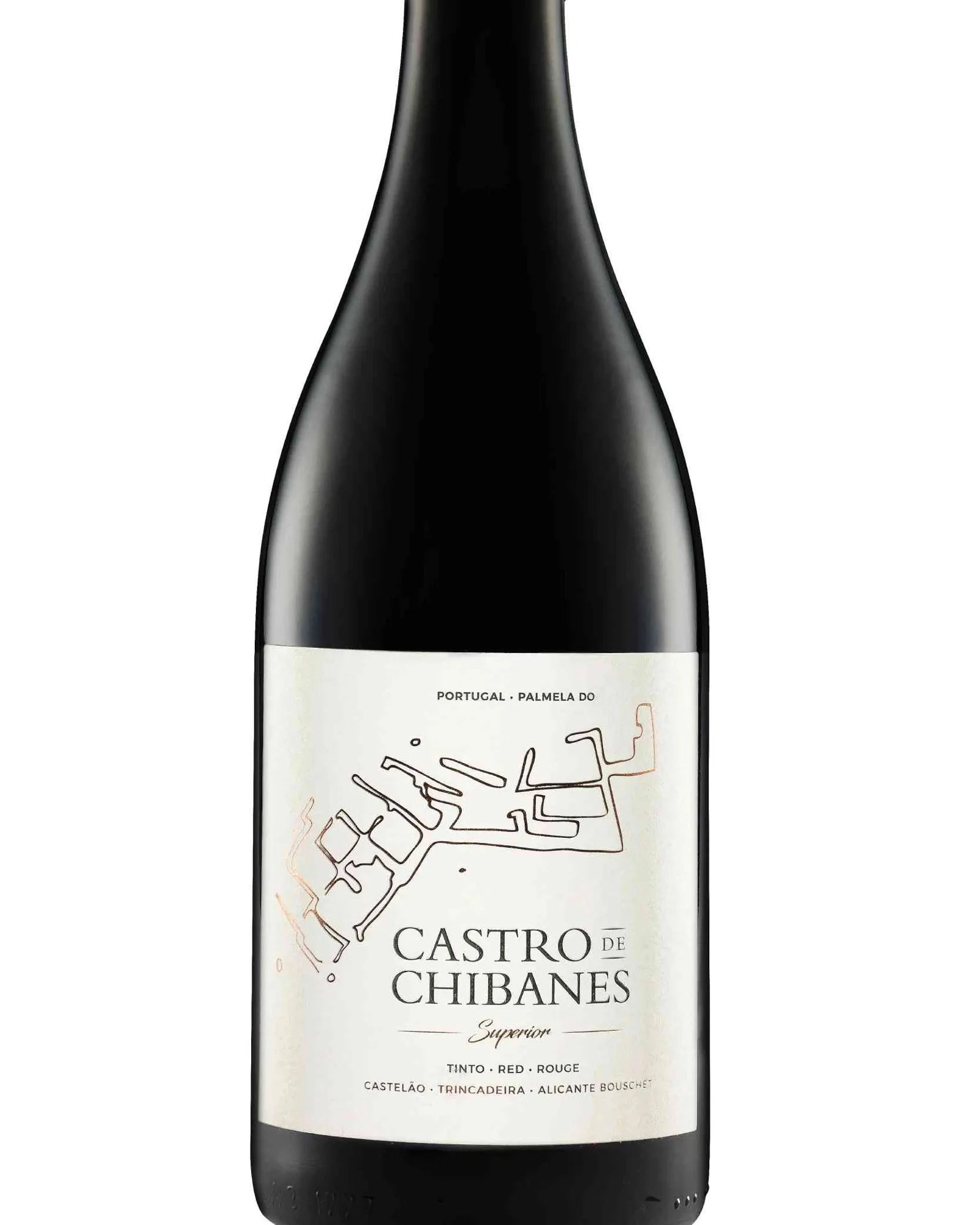 This wine features a drawing of the Castro de Chibanes , a fortification from the Roman and pre-Roman era, located very close to the Camolas winery. The idea behind this example is to share and promote the rich archaeological heritage of the Setúbal Peninsula. This blend is composed of three typical Portuguese grape varieties: 50% Castelão, 25% Trincadeira and 25% Alicante Bouschet. The predominant Castelão finds ideal conditions in the Setúbal Peninsula for its best expression in Portugal. Trincadeira and Alicante Bouschet, on the other hand, balance the blend and bring harmony to all the elements.